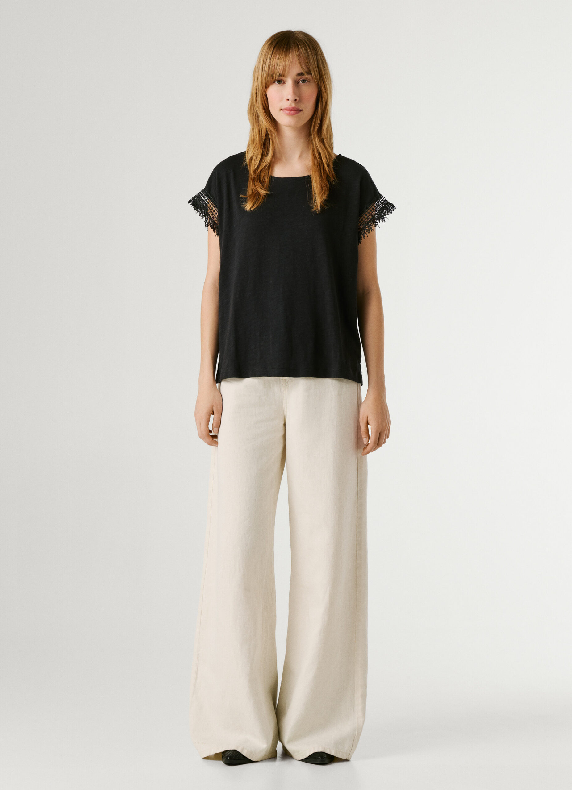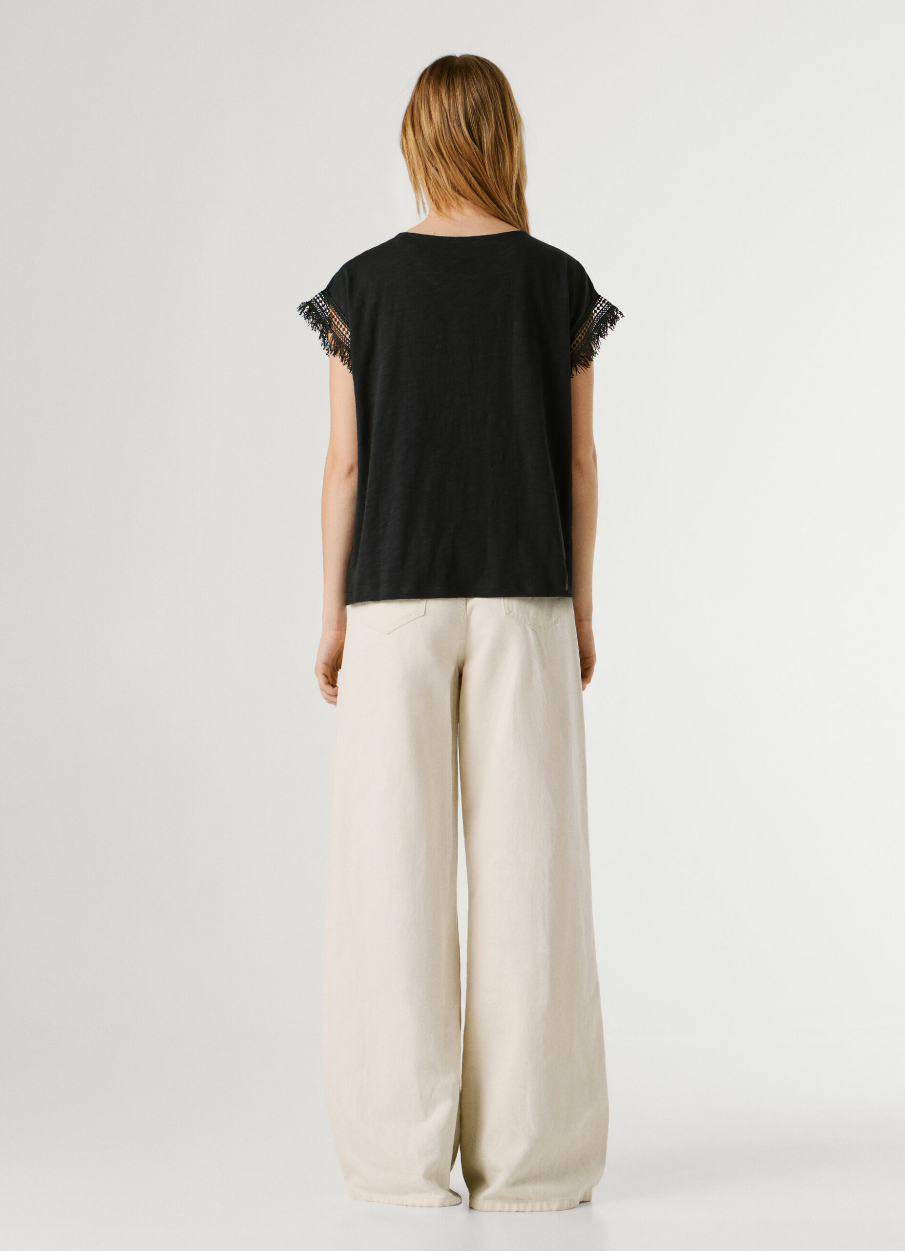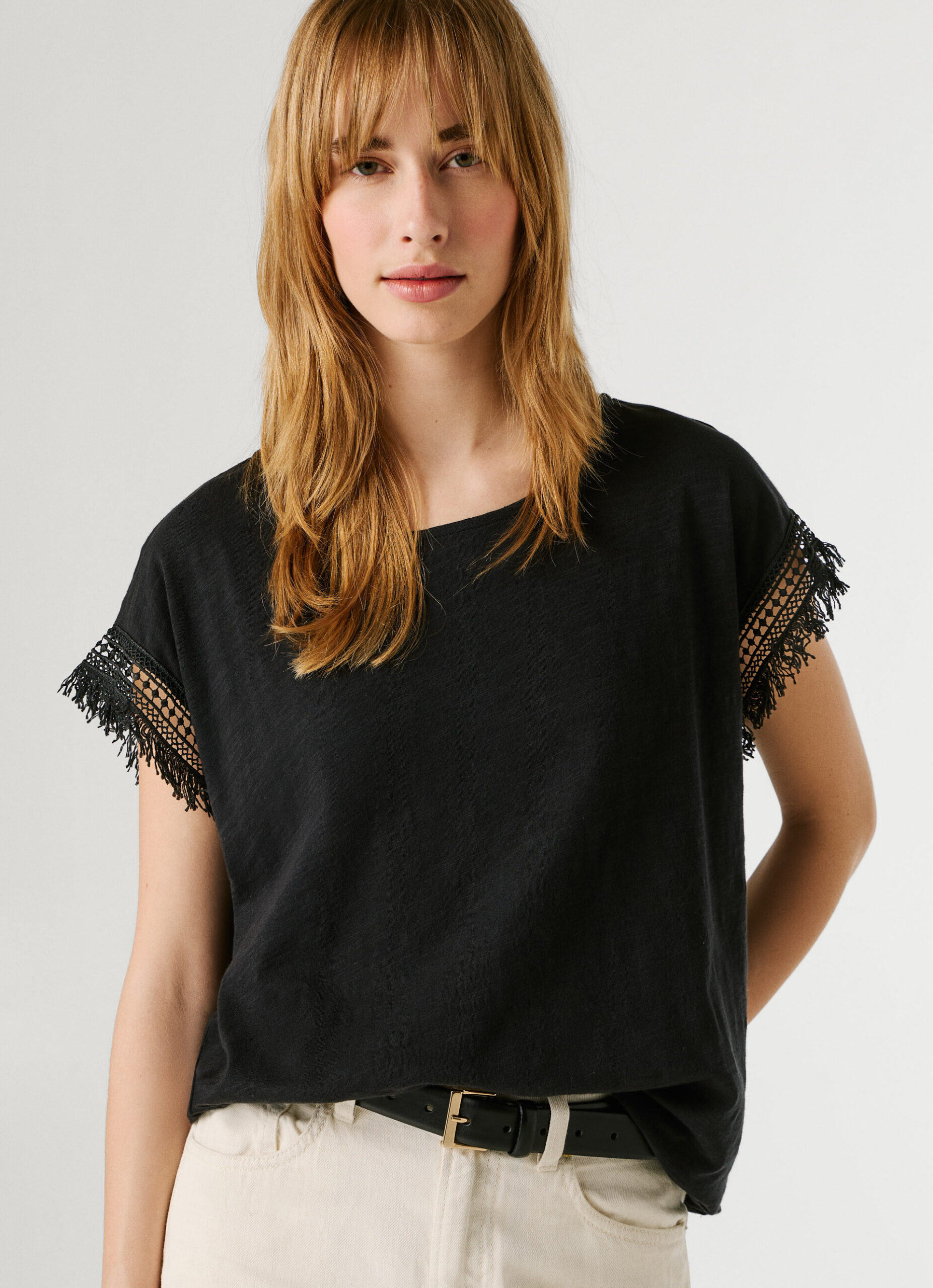 PEPE JEANS CREW NECK T-SHIRT FRINGES BLACK