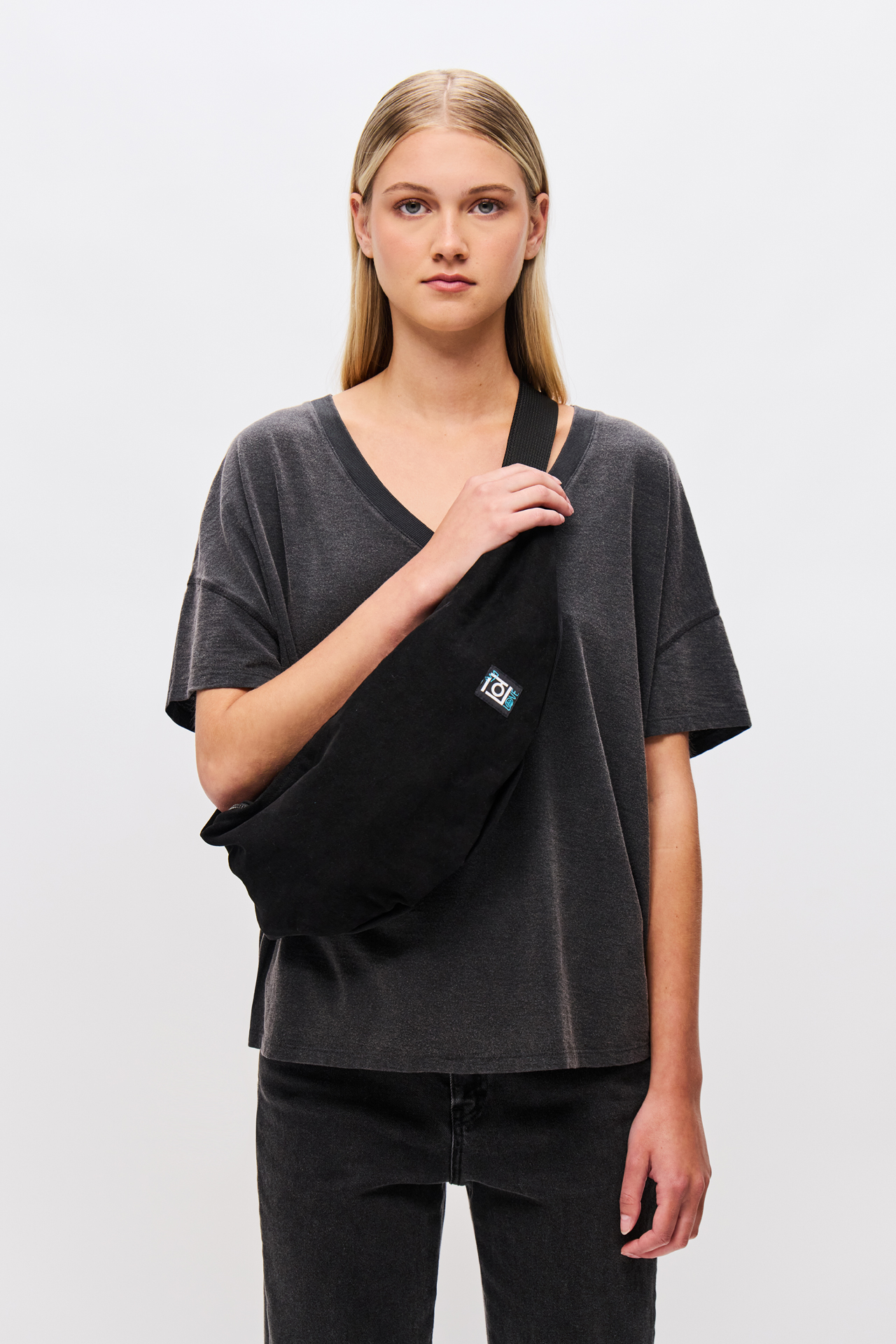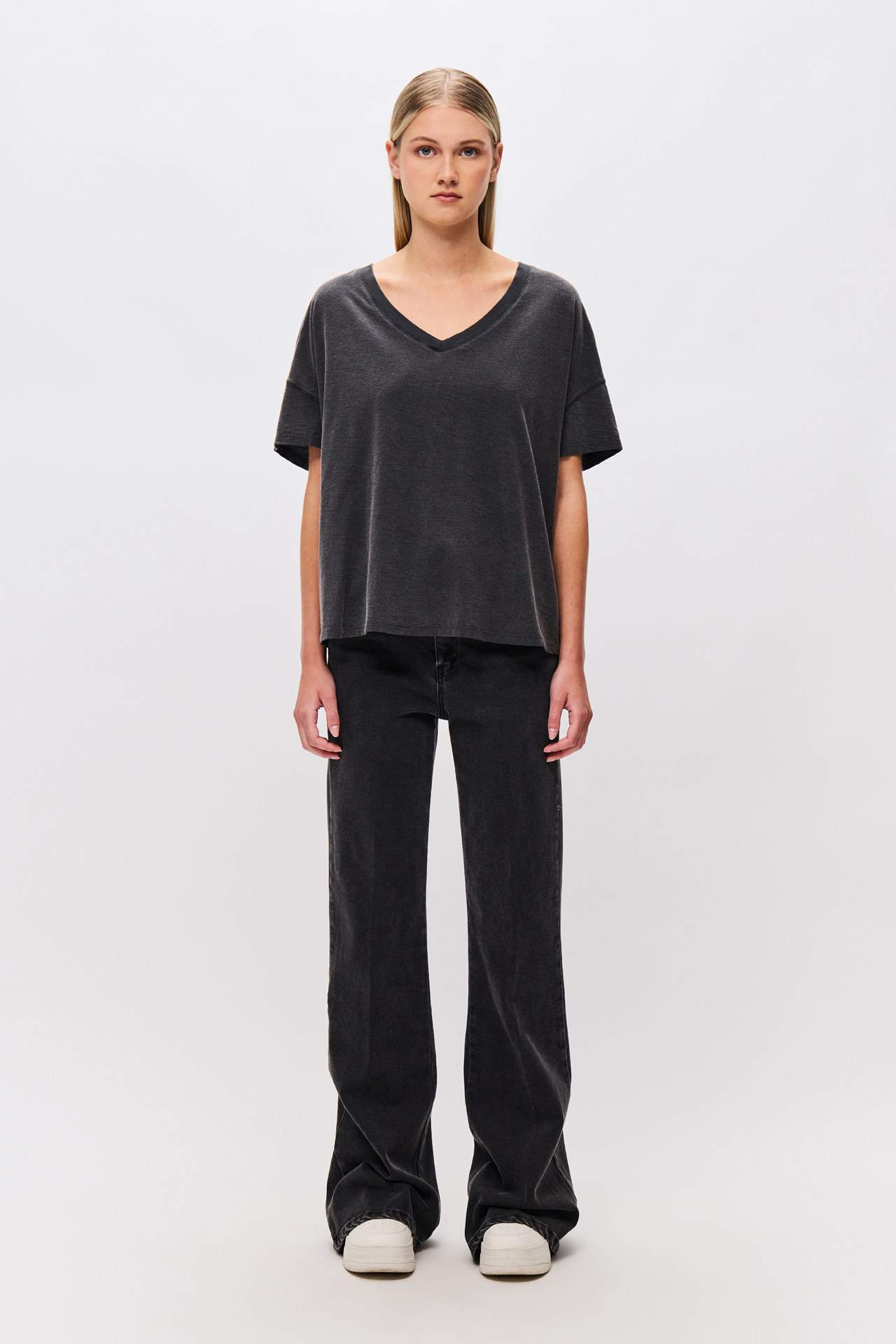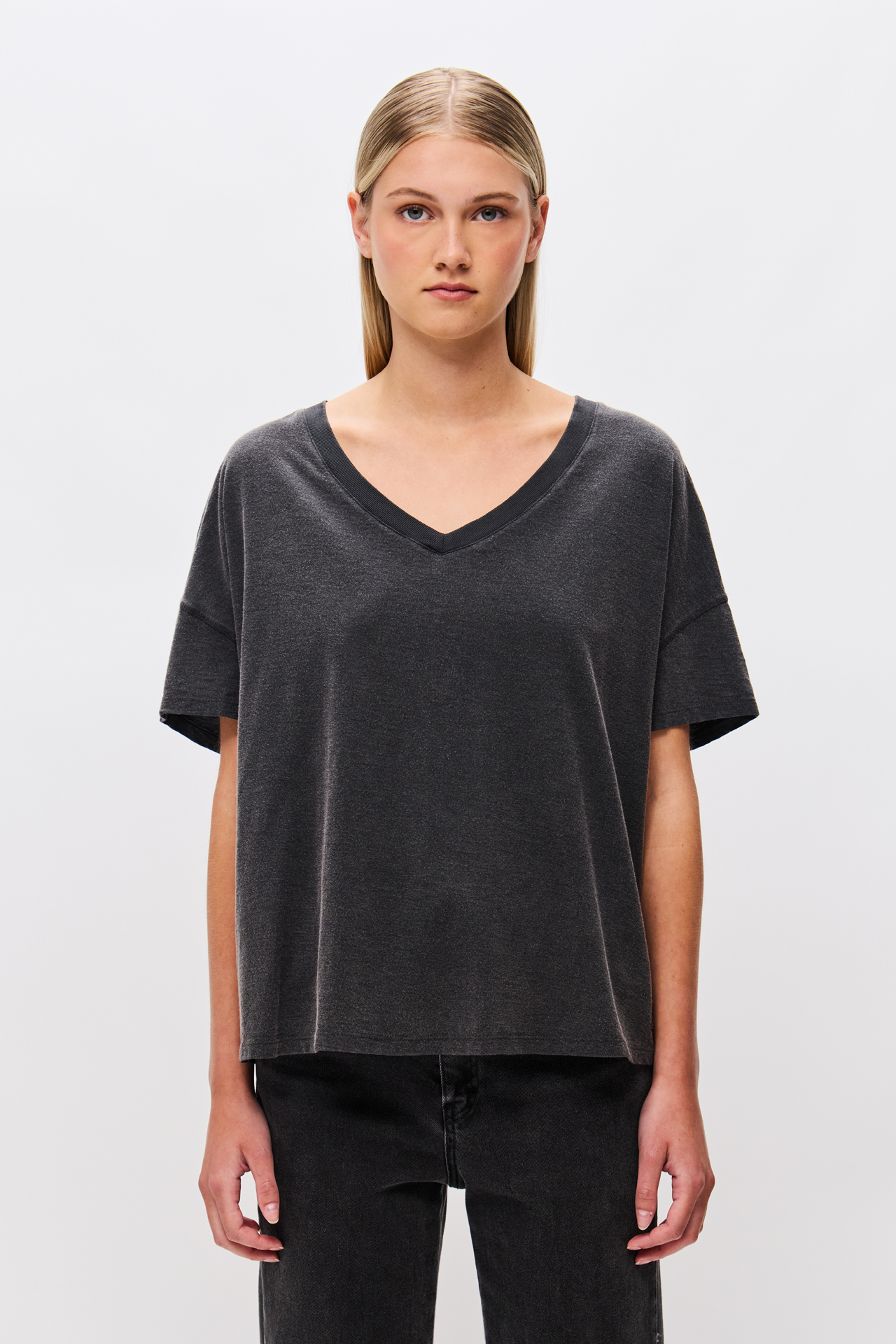 DIRTY LAUNDRY OVERSIZED T-SHIRT V NECKLINE VINTAGE BLACK