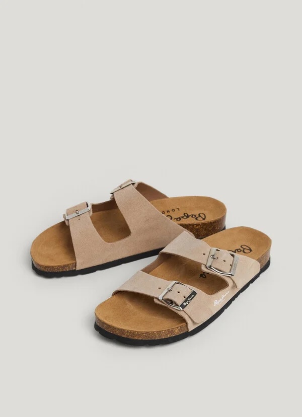 PEPE JEANS SUEDE SANDALS WITH DOUBLE BUCKLE