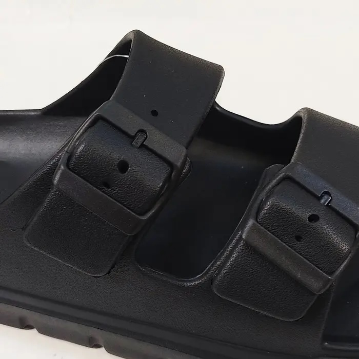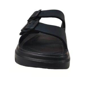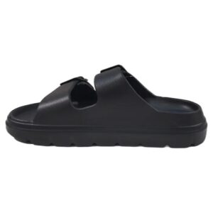 Adjustable Straps: It features two thick straps with large, tonal buckles that allow you to customize the fit for narrow or wide feet.